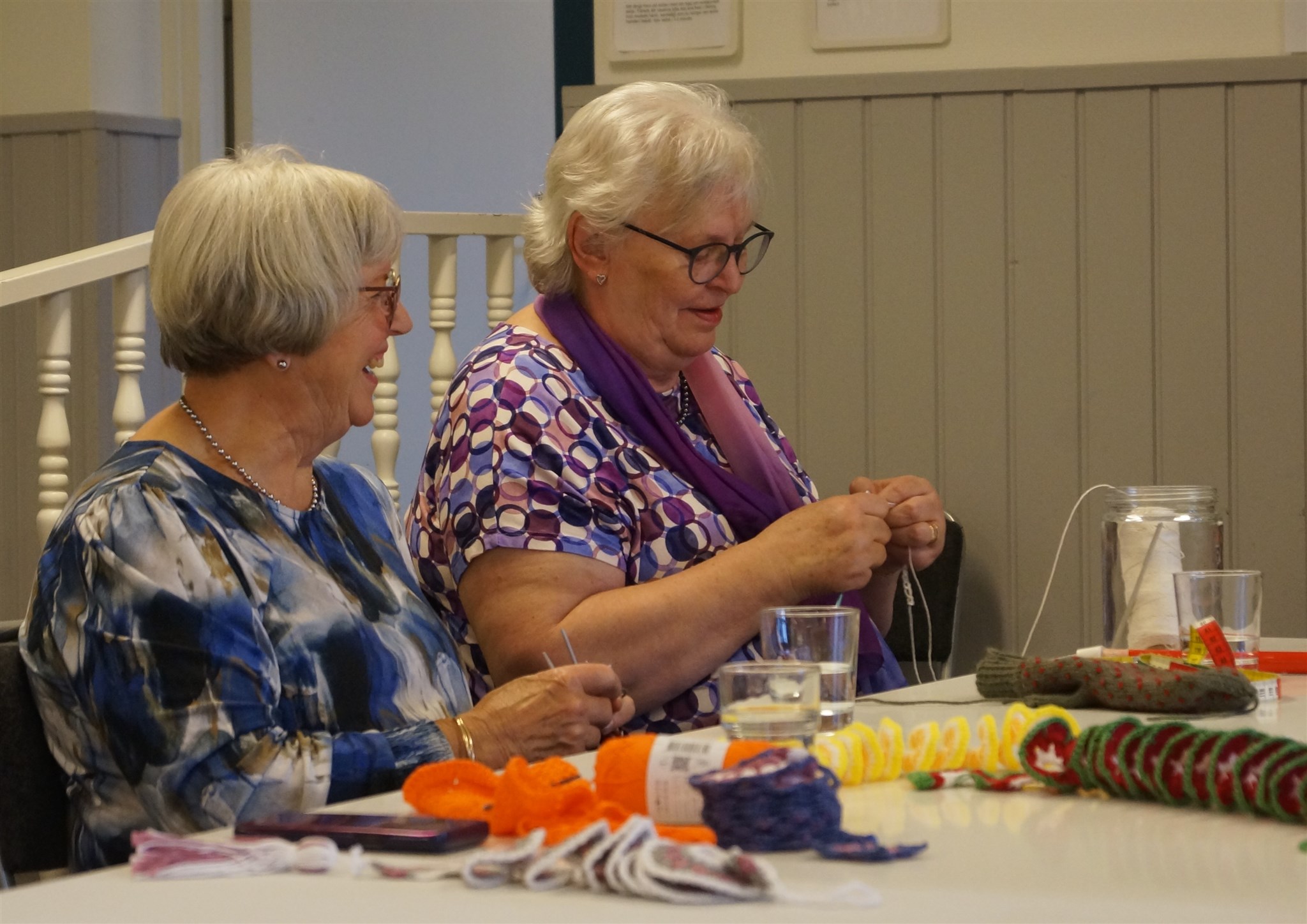 Gunnel Eriksson och Ann-Sofie Lundin handarbetar.