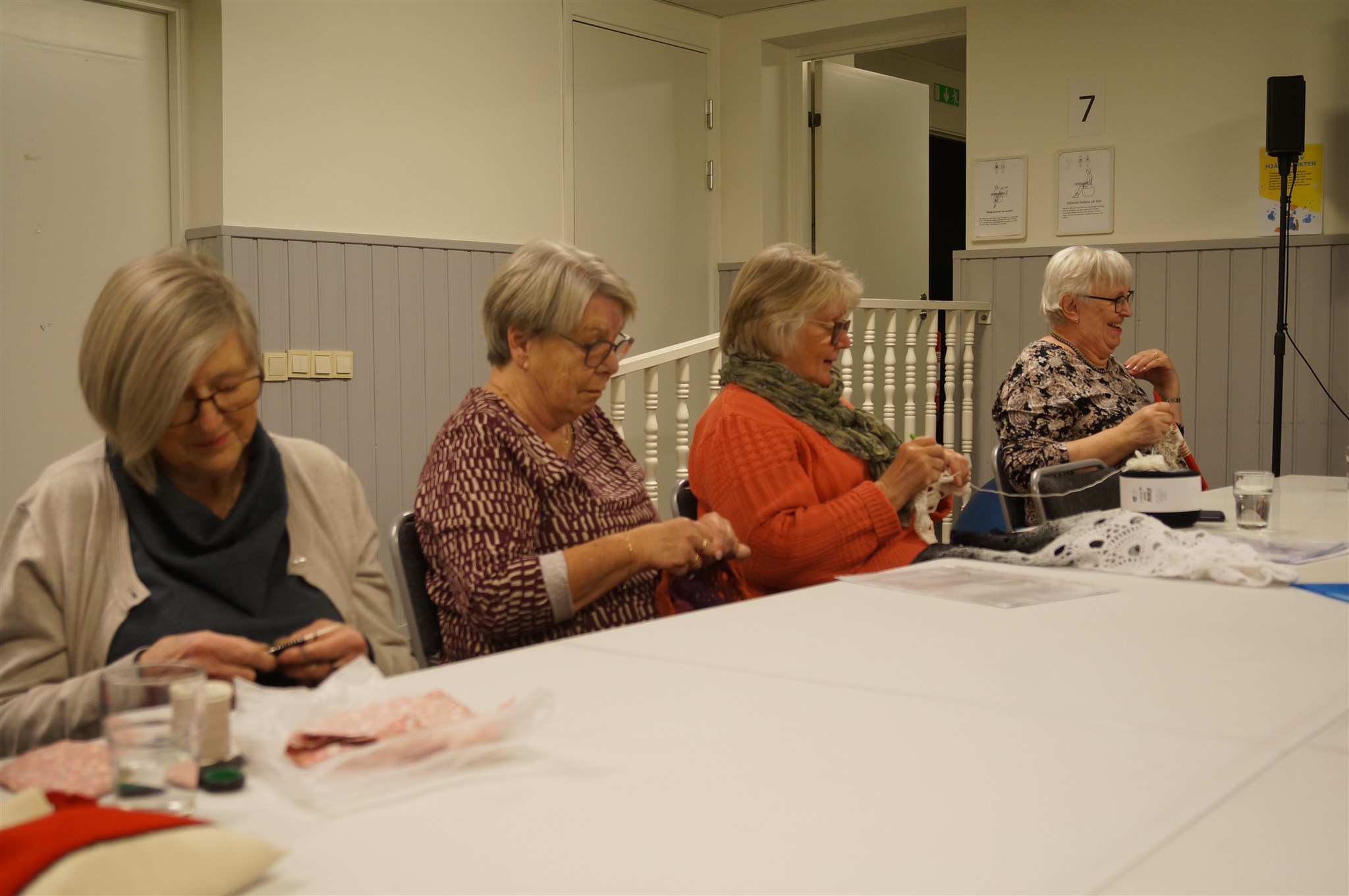 Flitens lampa lyser. Anita Odenberg Andersson, Eva Bogren, Marianne Strandlund och Ann-Sofie Lundin gör "virussjalar".