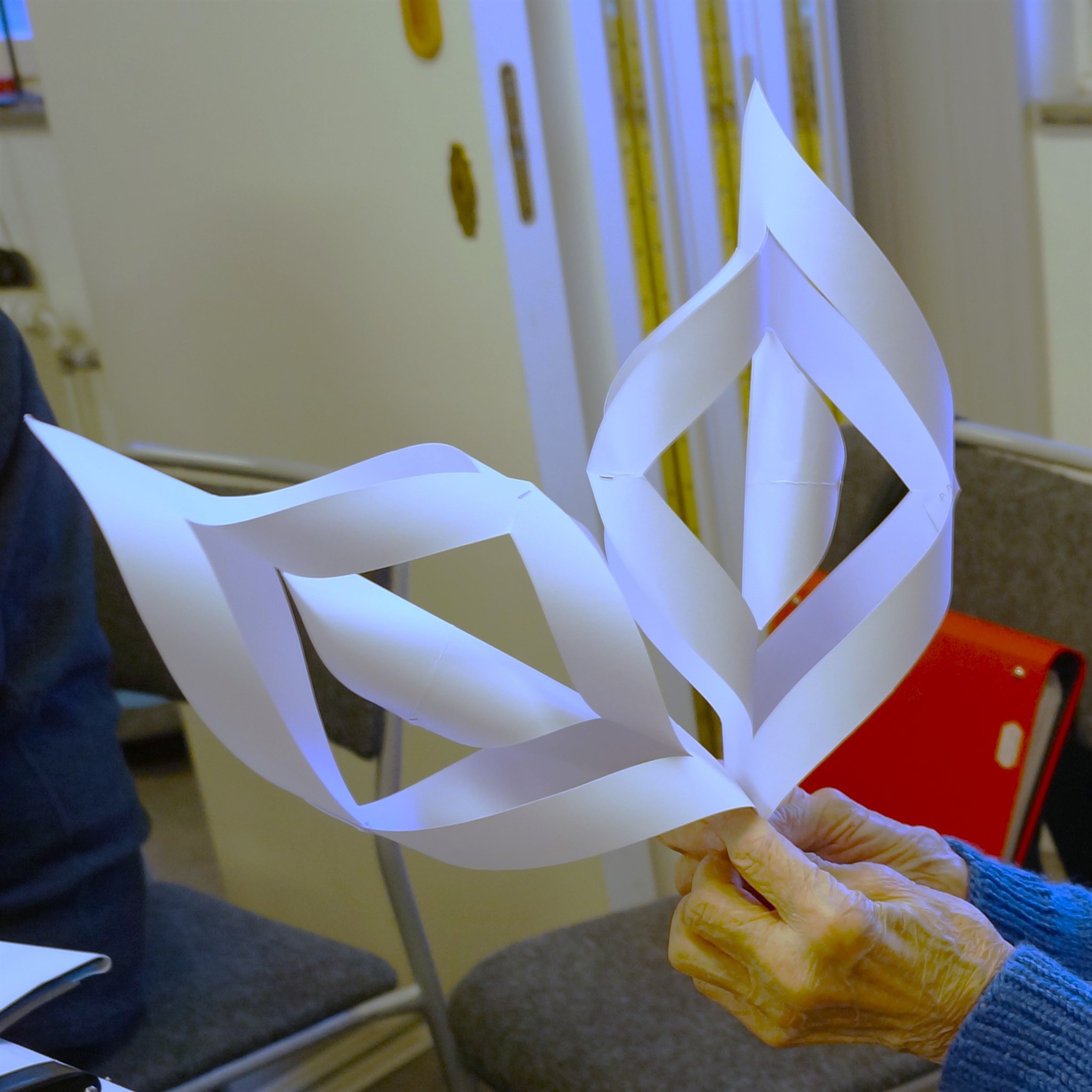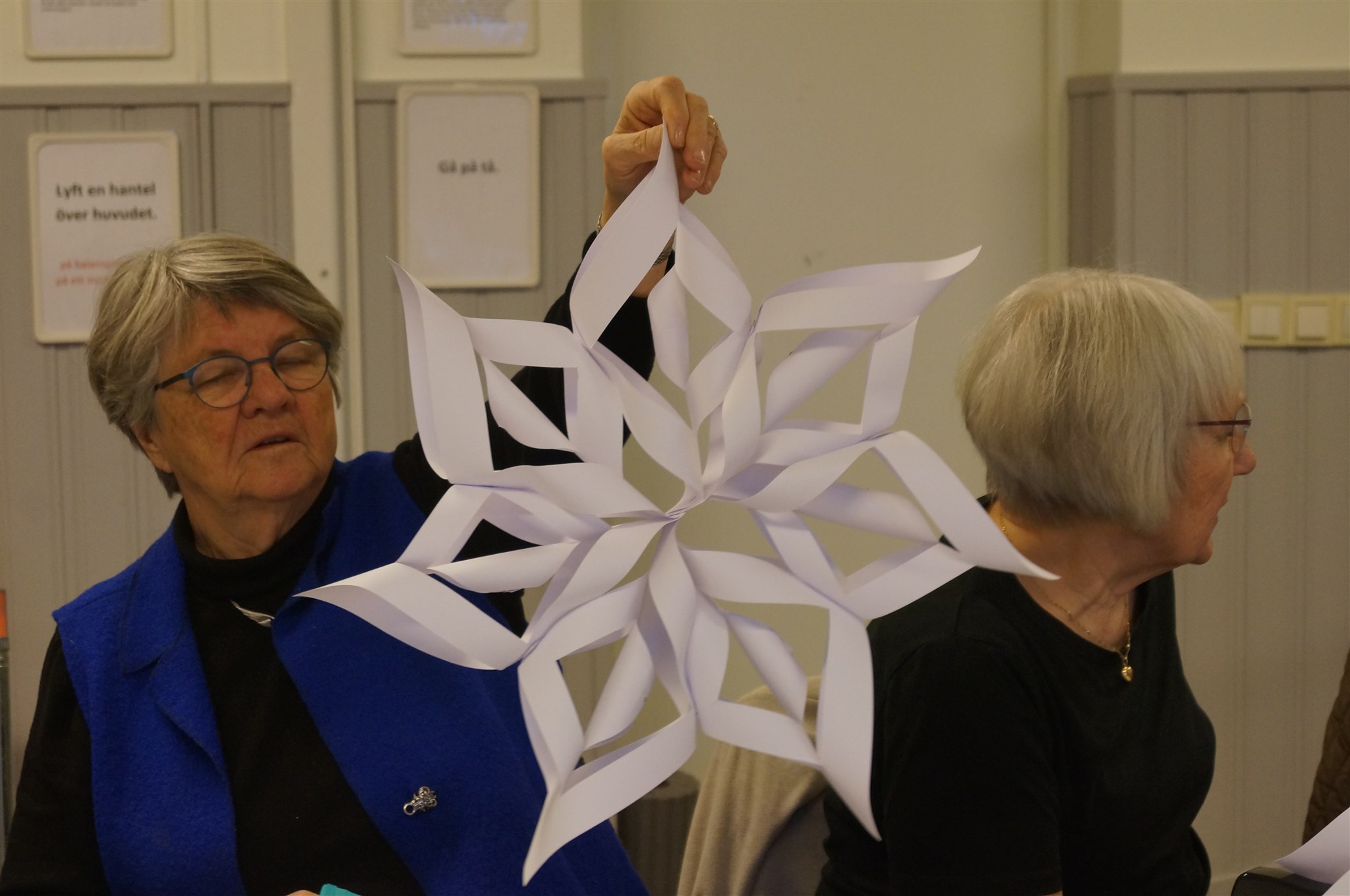 Anita Löfstrand håller upp en färdig stjärna.