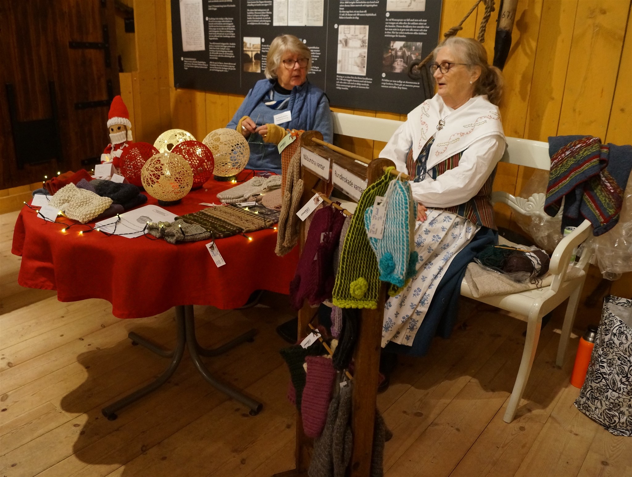 Marianne Strandlund med fönstersmycken och Birgitta Wolter med vantar mm.