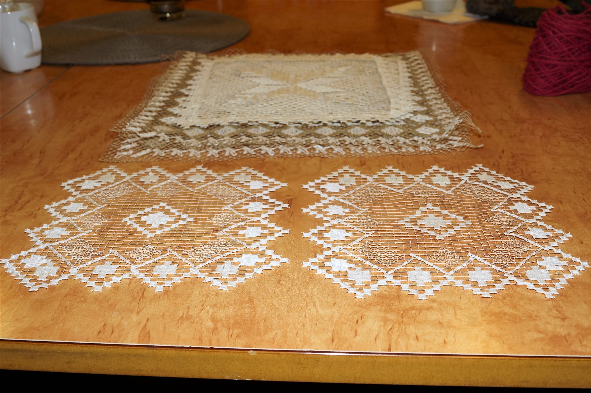 En medlem hade fått dukar i tekniken pinnspets och tog med så att vi alla skulle få se.