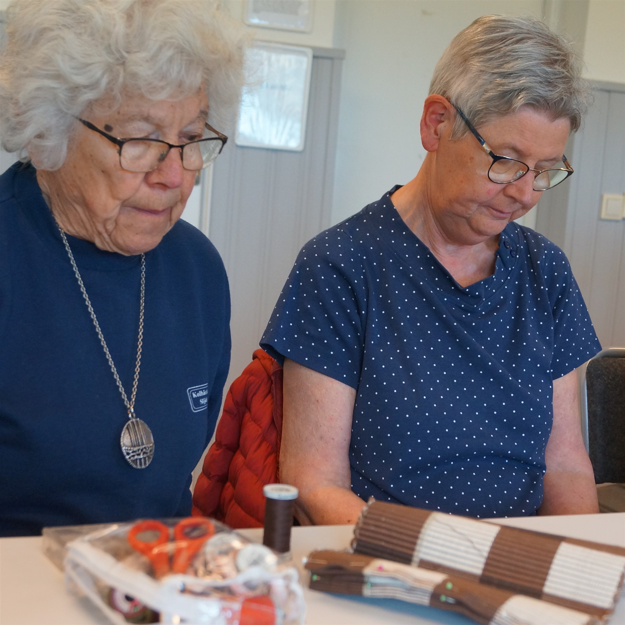 Gunnel Eriksson och Ann-Sofie Lundin handarbetar.