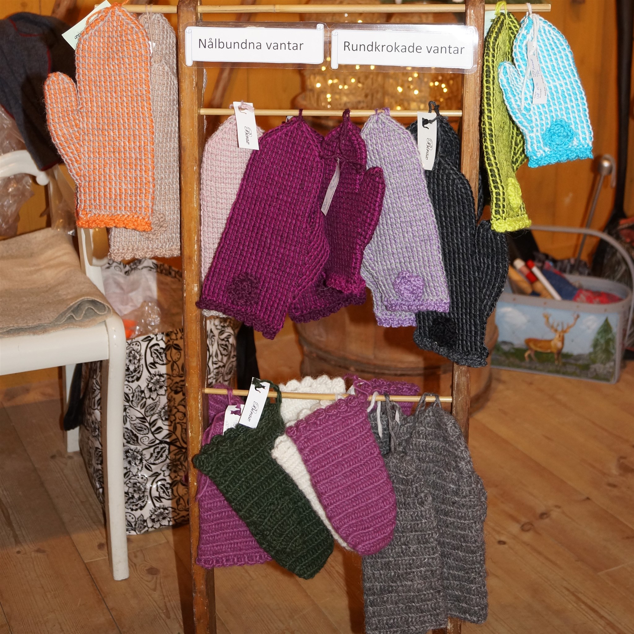 Marianne Strandlund med fönstersmycken och Birgitta Wolter med vantar mm.