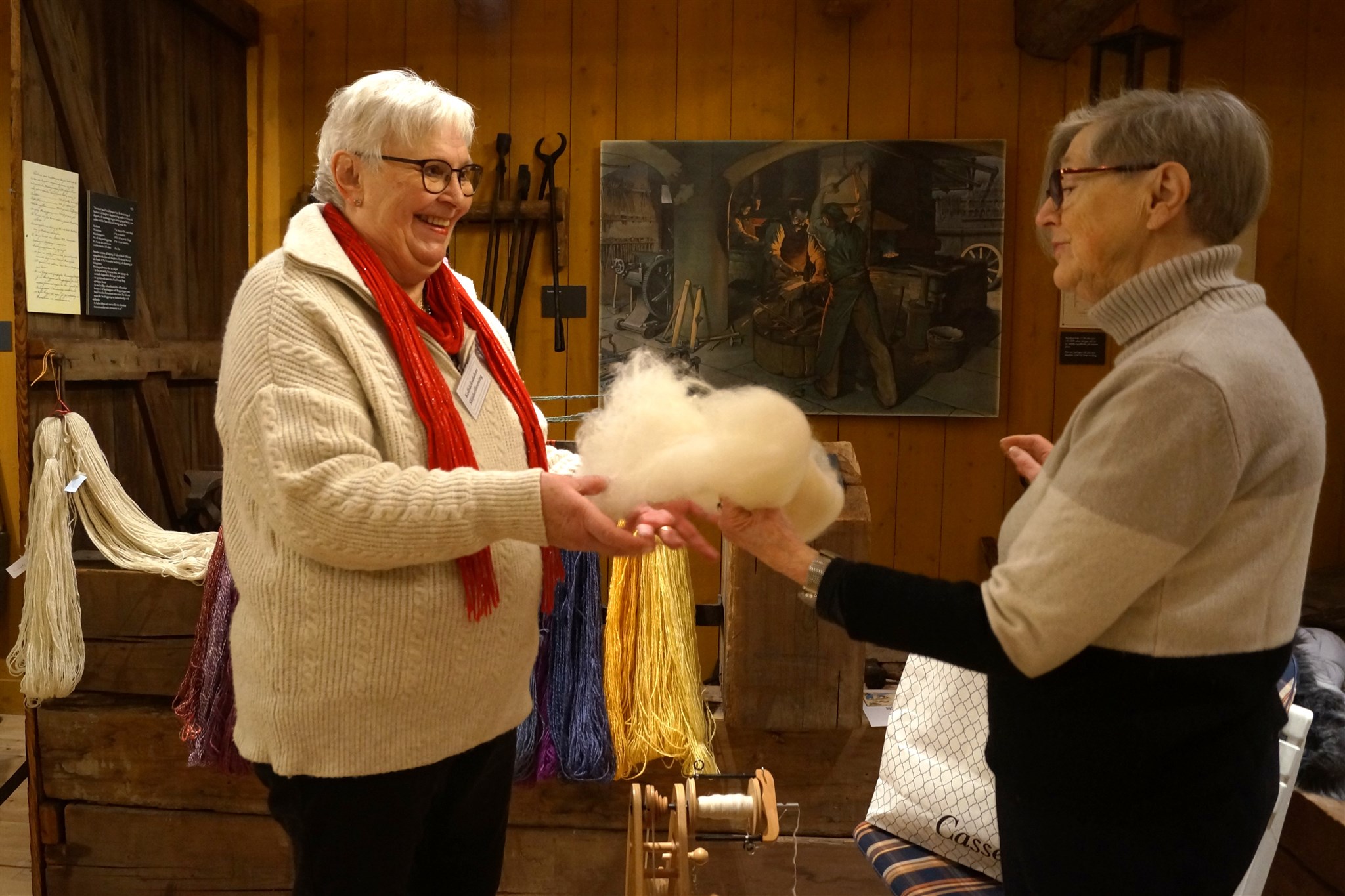 Ann-Sofie Lundin och Anita Odenberg Andersson diskuterar ull.