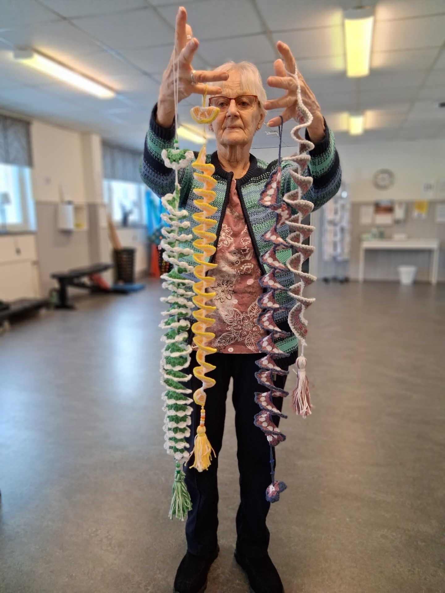 Ulla Halén med famnen full med snurror.
